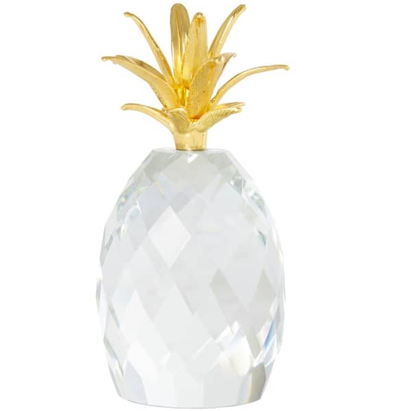 Clear Crystal Faceted Pineapple Fruit Sculpture with Gold Leaves (Set of 3)