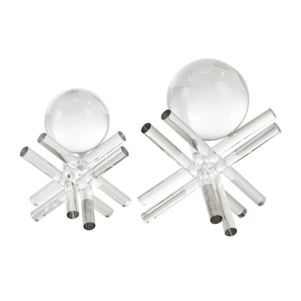 Clear Crystal Jack Inspired Abstract Sculpture with Clear Resting Orbs (Set of 2)