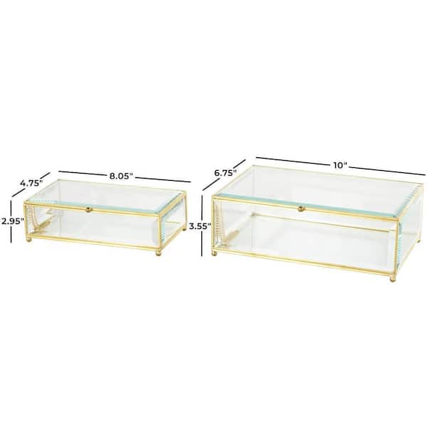 Clear Glass Beveled Jewelry Box with Gold Metal Frame and Chain Accent (Set of 2)