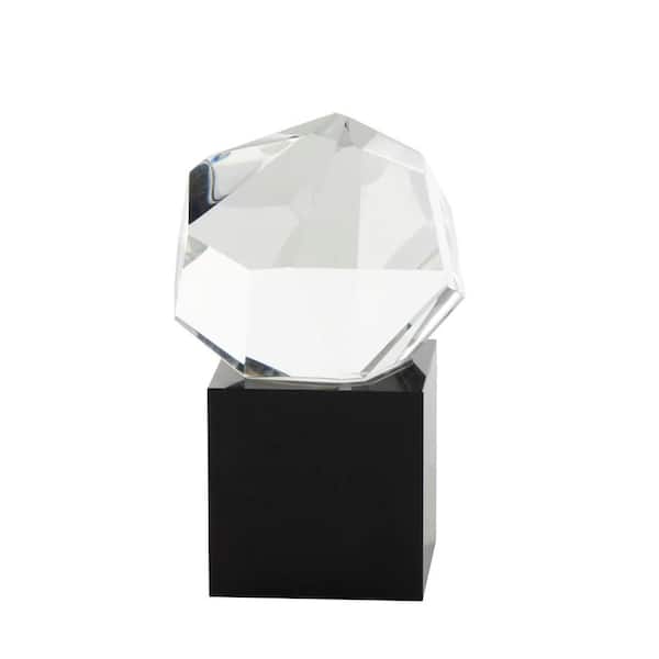 Clear Glass Cut Stone Inspired Abstract Sculpture with Black Base