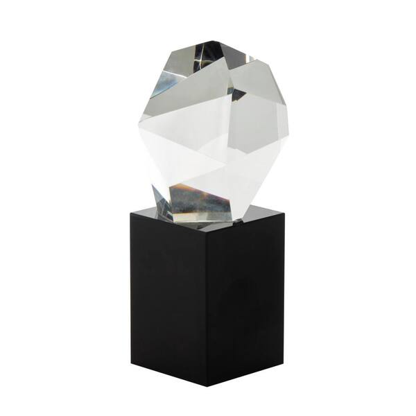 Clear Glass Cut Stone Inspired Abstract Sculpture with Black Base