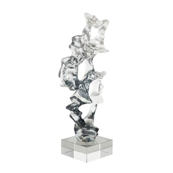 Clear Glass Handmade Freeform Abstract Sculpture with Clear Square Base