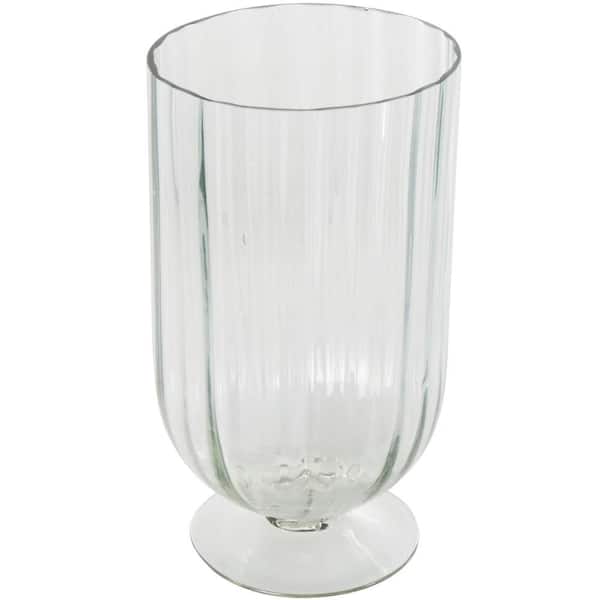 Clear Glass Ribbed Fluted Candle Holder with Elevated Base