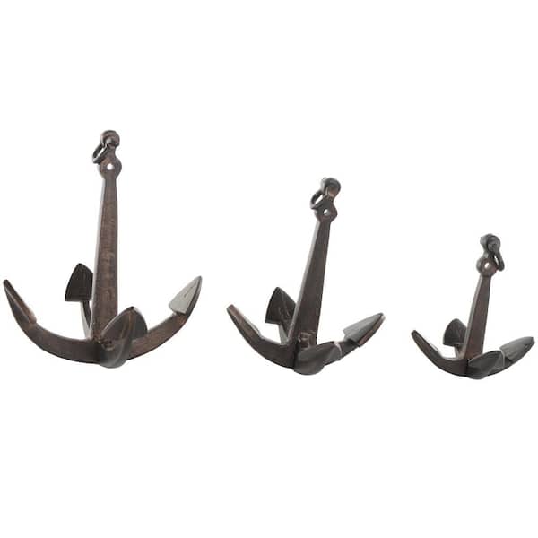 Copper Aluminum Metal Weathered Anchor Sculpture with Hanging Hook (Set of 3)