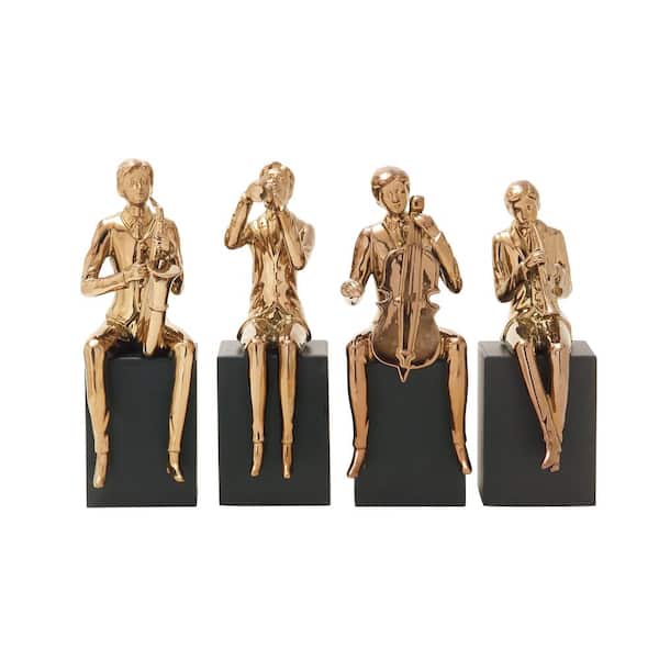 Copper Ceramic Musician Sculpture with Black Base (Set of 4)