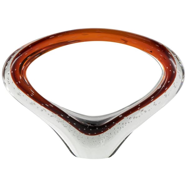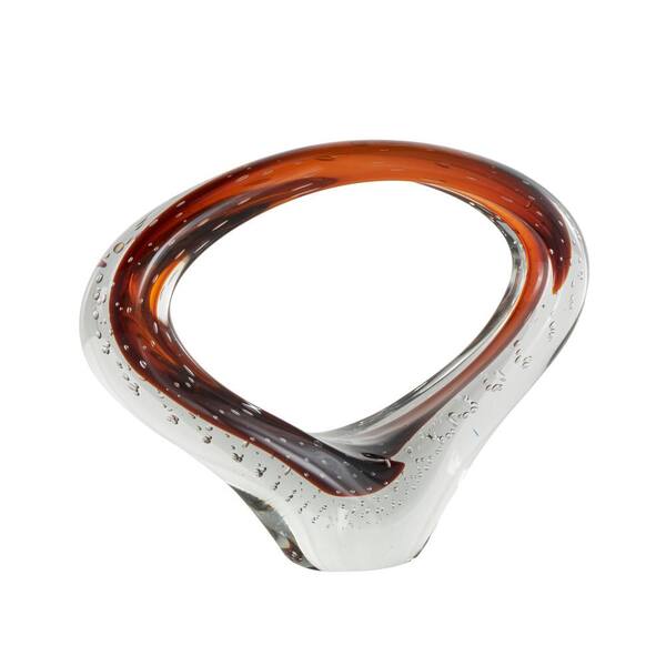 Copper Glass Cutout Oval Ombre Abstract Sculpture with Bubble Texturing and Clear Accents