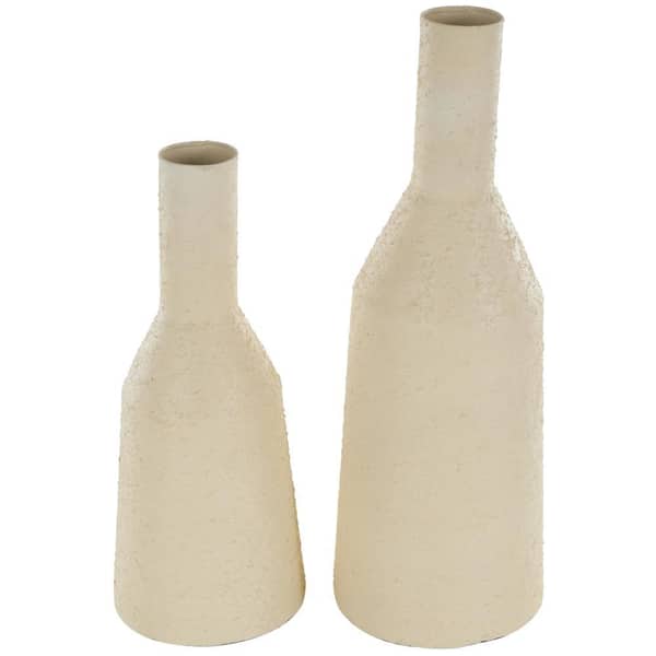 • Cone home decor vase set boasts a textured cream finish