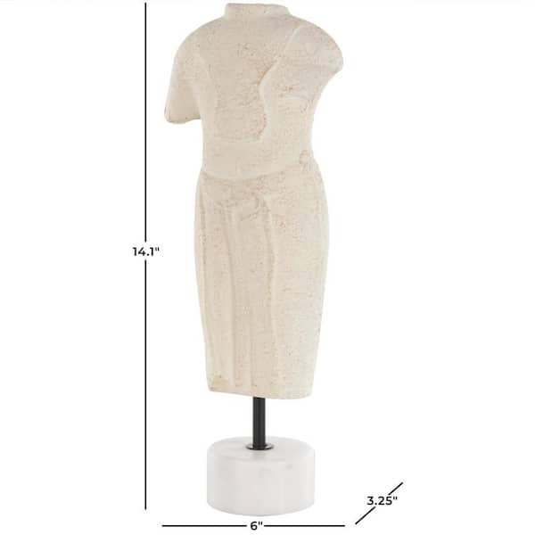 Cream White 6 in. x 14 in. Woman Paper Mache Distressed Greek Inspired Sculpture with Marble Base