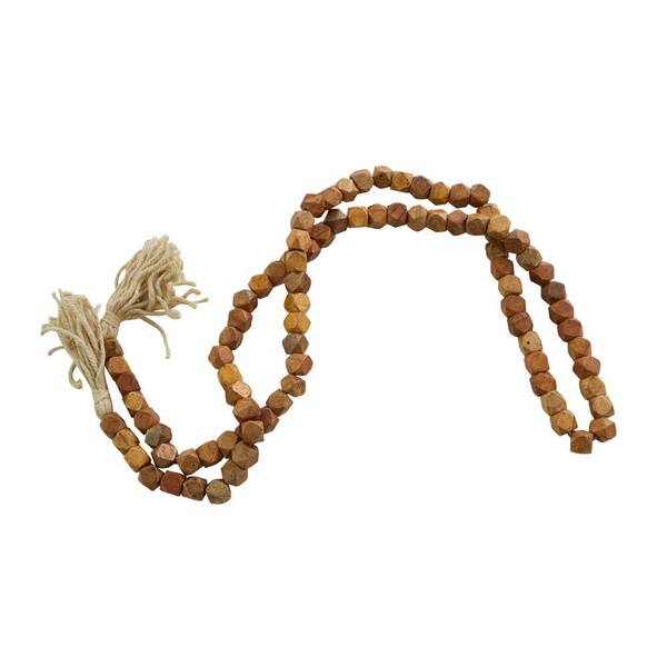 Dark Brown Handmade Mango Wood Hexagon Carved Geometric Long Beaded Garland with Tassel