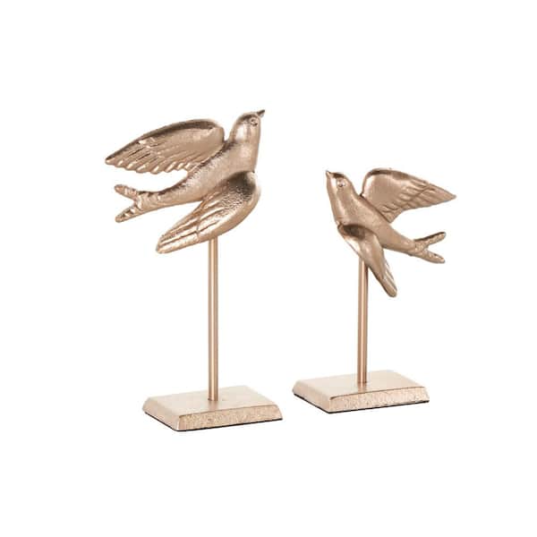 Gold Metal Metallic Bird Sculpture with Stand Set of 2