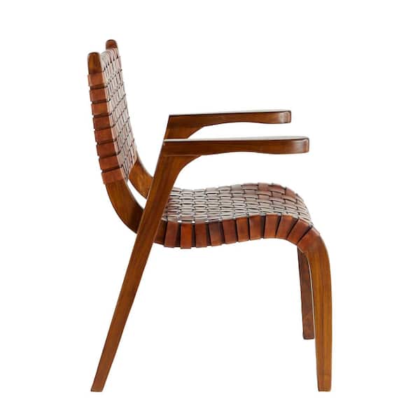 Golden Brown Teak Wood and Top Grain Leather Dining Chair