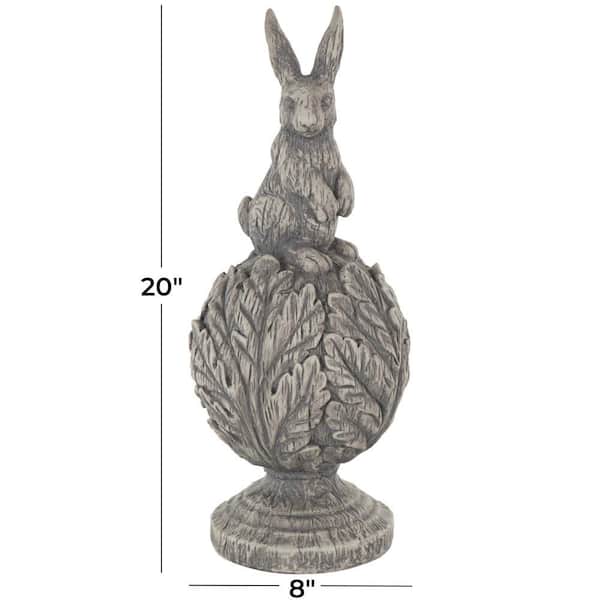 Gray 8 in. x 20 in. Rabbit Textured Polystone Sculpture with Leaf Covered Round Base