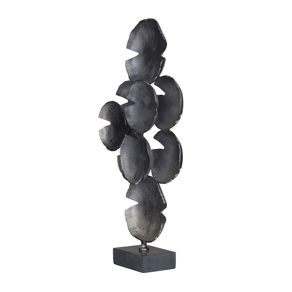 Gray Aluminum Layered Disk Abstract Sculpture with Black Base