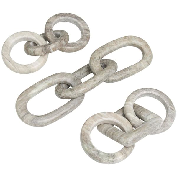 Gray Marble Geometric 3-Link Chain Sculpture with Various Shapes (Set of 3)