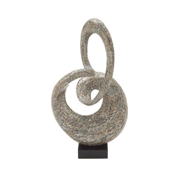 Gray Mother of Pearl Swirl Abstract Sculpture with Black Base