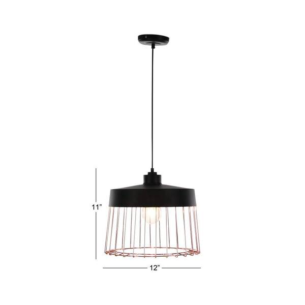 Industrial 1-Light Drum-Shaped Iron Grid Shade with Rose Gold Accents