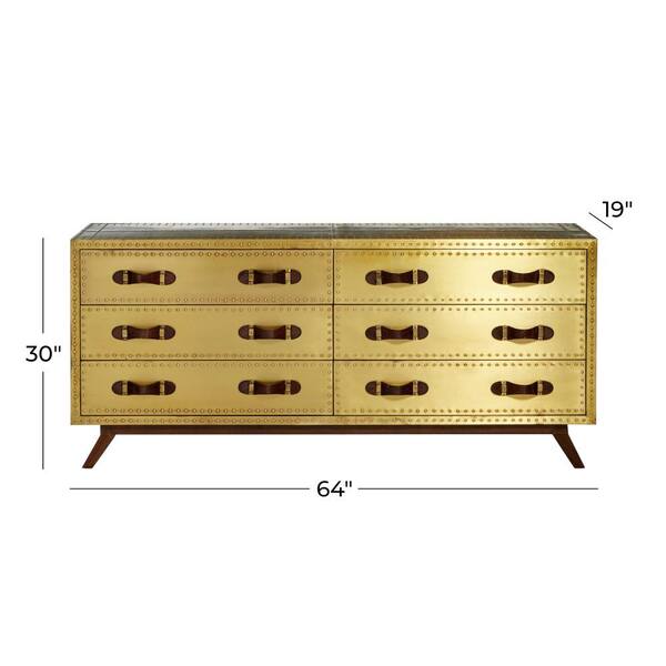 Large 6-Drawer Brass-Plated Wood Chest with Leather Handles, 64 in. x 30 in.