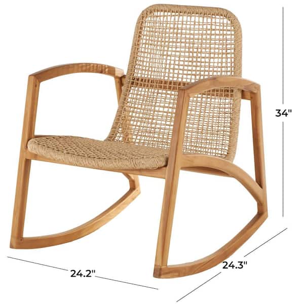 Light Brown Handmade Woven Rectangular Plastic Rattan Accent Chair with Teak Frame
