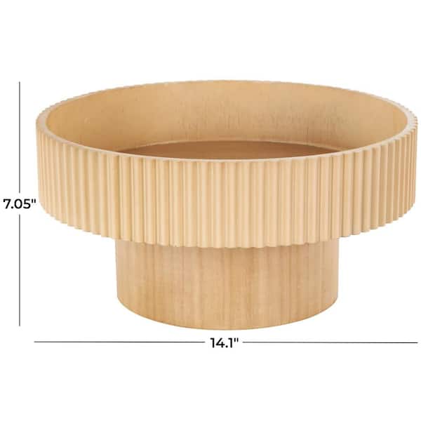 Light Brown Wood Ribbed Decorative Bowl with Elevated Base