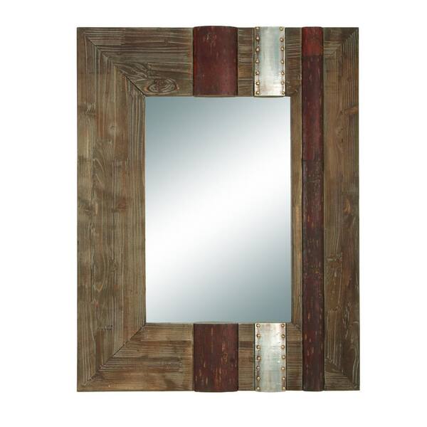 Medium Rectangle Distressed Wood Modern Mirror (36 in. H x 28 in. W)