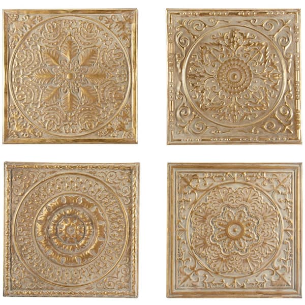 Metal Gold Scroll Wall Decor with Embossed Details (Set of 4)