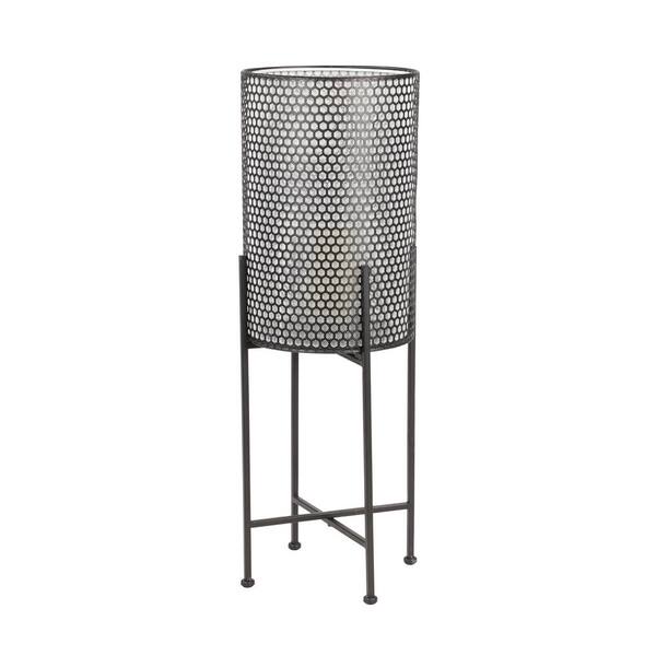 Modern Style Round White and Black Metal Floor Lantern Candle with Pierced Metal Pattern
