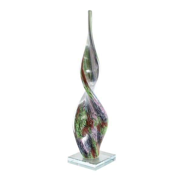 Multi Colored Glass Swirl Abstract Sculpture with Clear Base