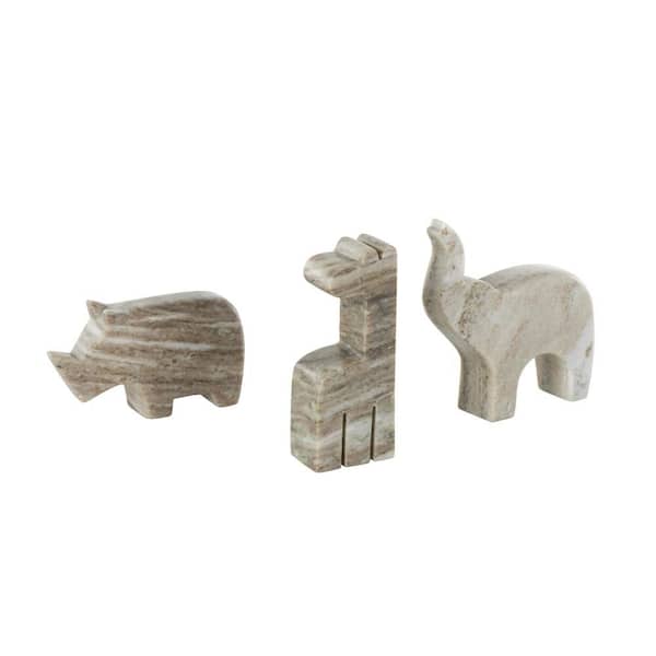 Multi Colored Marble Small Rounded Safari Animals Sculpture with Copper Accents (Set of 3)