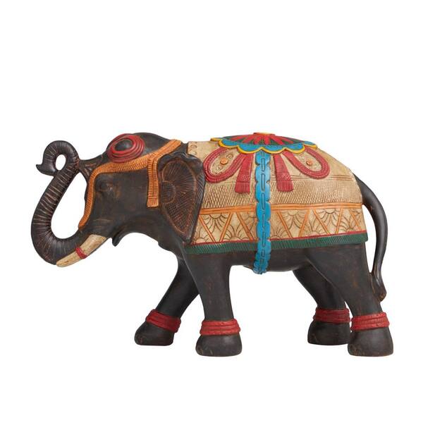 Multi Colored Resin Handmade Decorated Elephant Sculpture with Intricate Carvings and Floral Designs