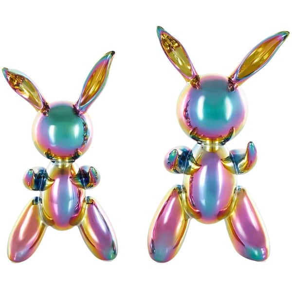Multi-colored Ceramic Abstract Balloon Inspired Rabbit Sculpture with Rainbow Shimmer Finish (Set of 2)