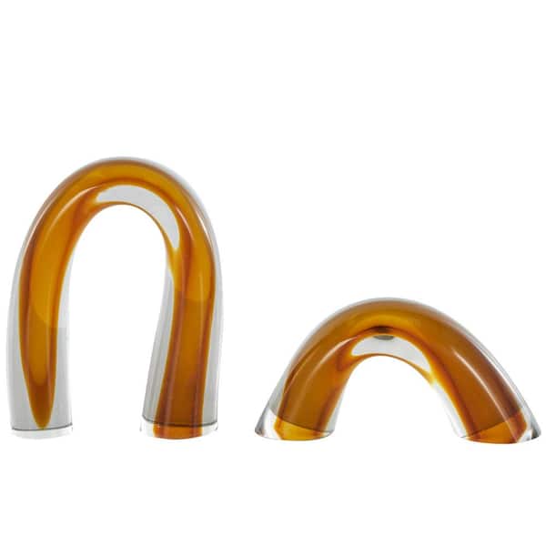 Orange Glass Arch Abstract Sculpture with Clear Accents (Set of 2)