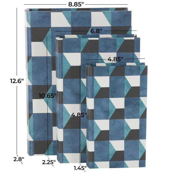 Rectangle Faux Leather Faux Book Storage Box with Black and White Geometric Patterns (Set of 3)