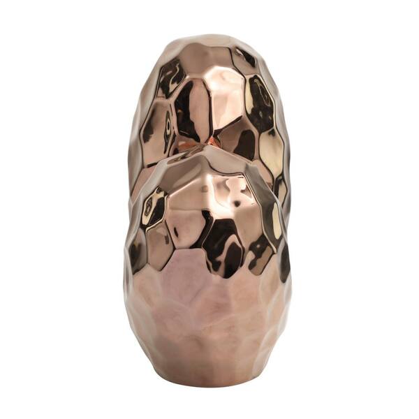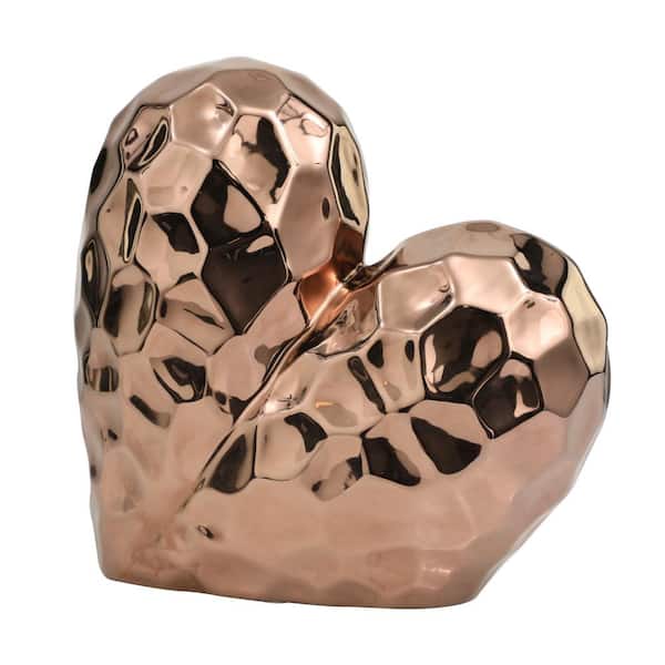 Rose Gold Ceramic Dimensional Angled Origami Inspired Heart Sculpture with Faceted Exterior