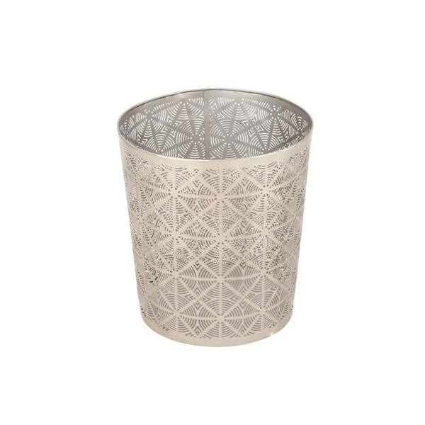 Round Silver Iron Waste Can with Circular and Diamond-Shaped Cut Out Design