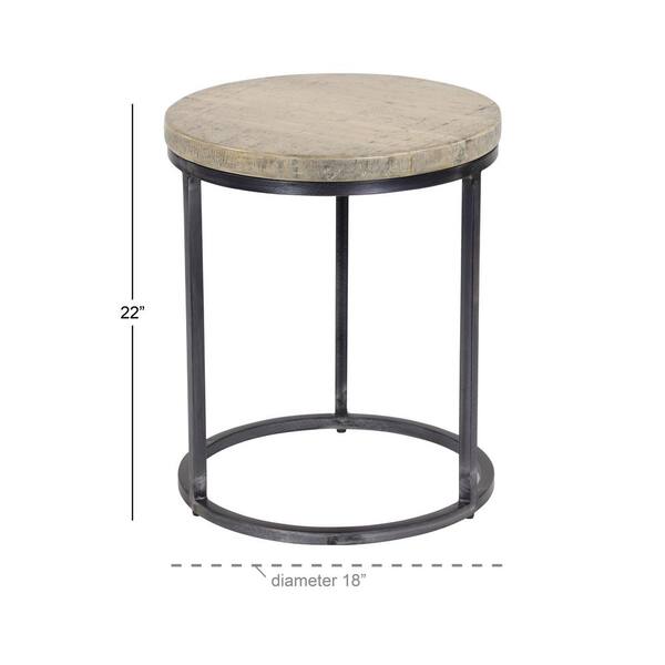 Rustic Small Round Iron and Natural Textured White Wood Accent Table
