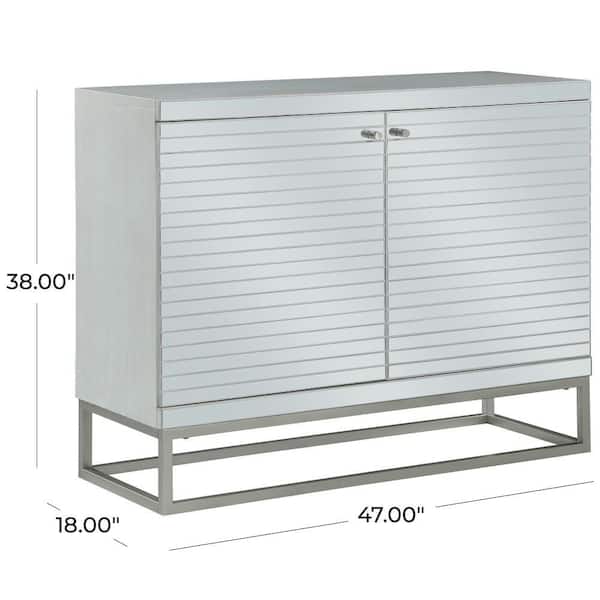 Silver 38 in. Glass 2 Door Cabinet with Linear Striped Panels and Gray Iron Base