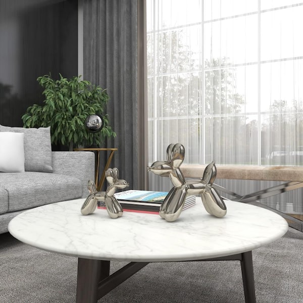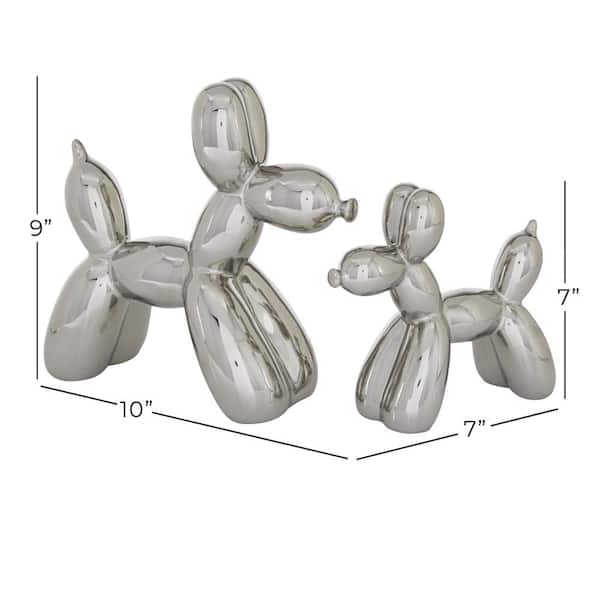 Silver Ceramic Balloon Dog Sculpture (Set of 2)