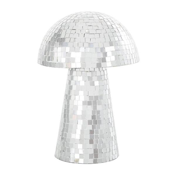 Silver Glass Handmade Mosaic Mirrored Mushroom Sculpture (Set of 2)