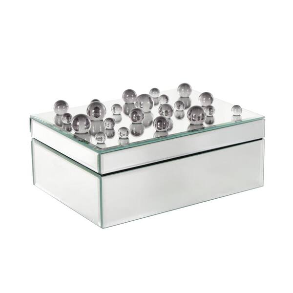Silver Glass Mirrored Jewelry Box with Black Bubble Textured Balls