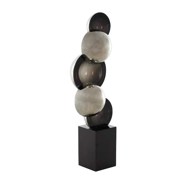 Silver Glass Stacked Orb Abstract Sculpture with Black Base