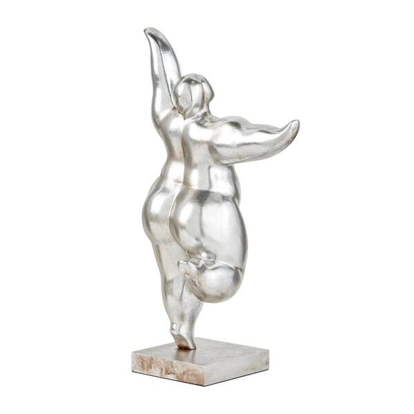 Silver Polystone Dancing Woman Sculpture On Rectangular Base, 12 in. x 19 in.