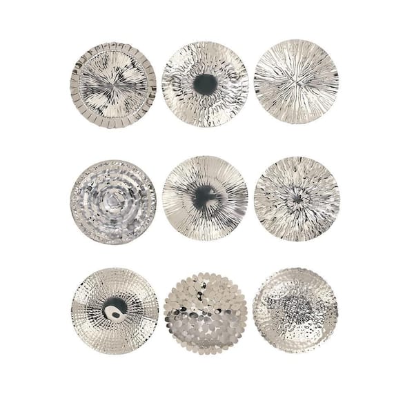 Stainless Steel Silver Plate Wall Decor with Hammered Design (Set of 9)
