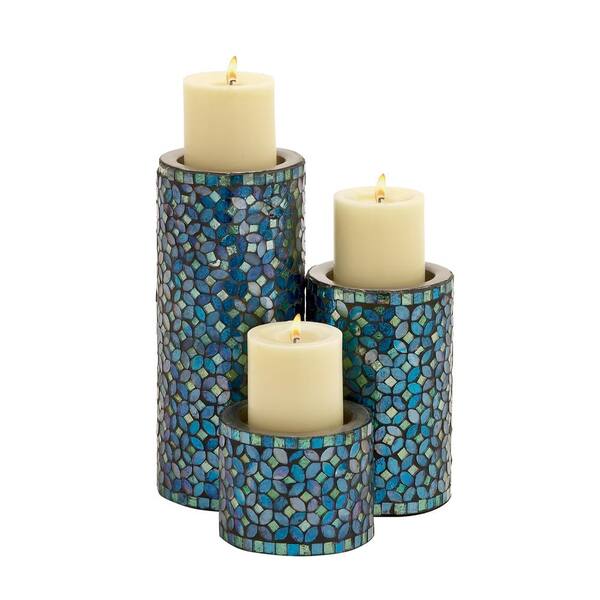 Teal Metal Handmade Candle Holder with Mosaic Pattern (Set of 3)