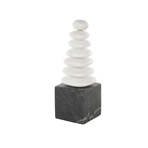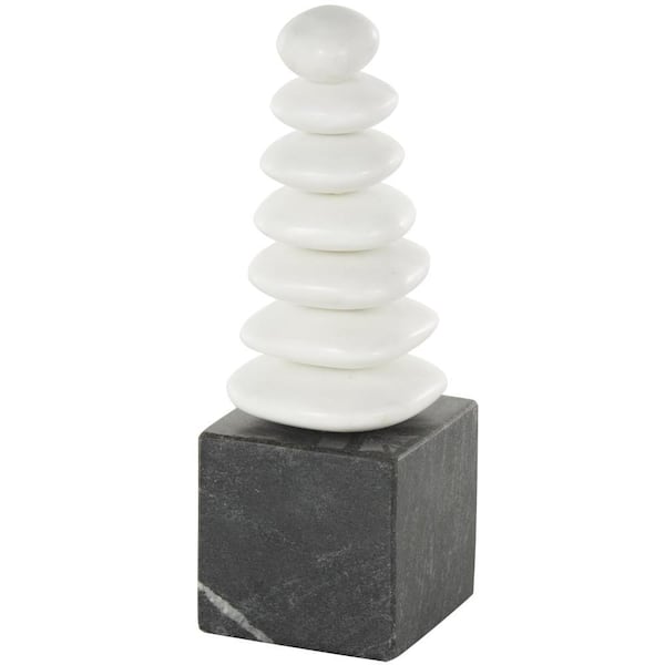 White 3 in. x 9 in. Marble Ceramic Stacked Stone Abstract Sculpture with Black Block Base