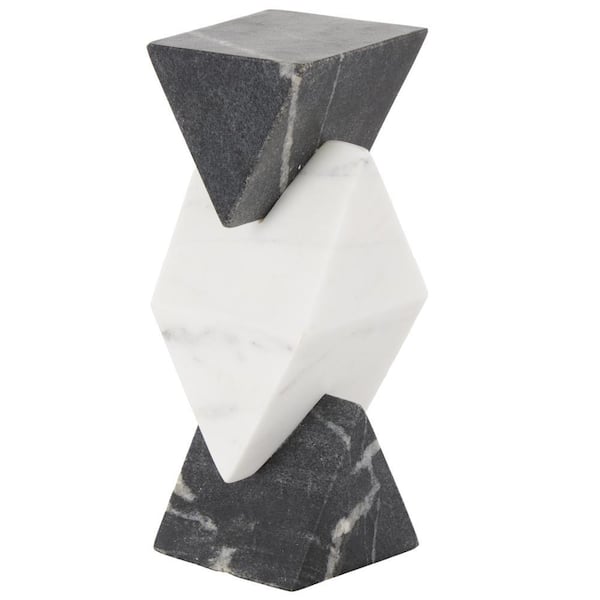 White 4 in. x 10 in. Marble Ceramic Stacked Pyramid Geometric Sculpture with White Diamond Center