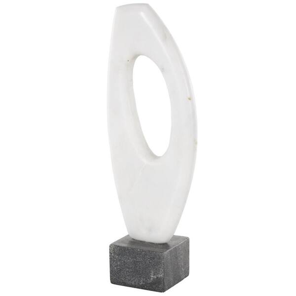 White 5 in. x 14 in. Marble Ceramic Angled Cutout Abstract Sculpture with Black Block Base