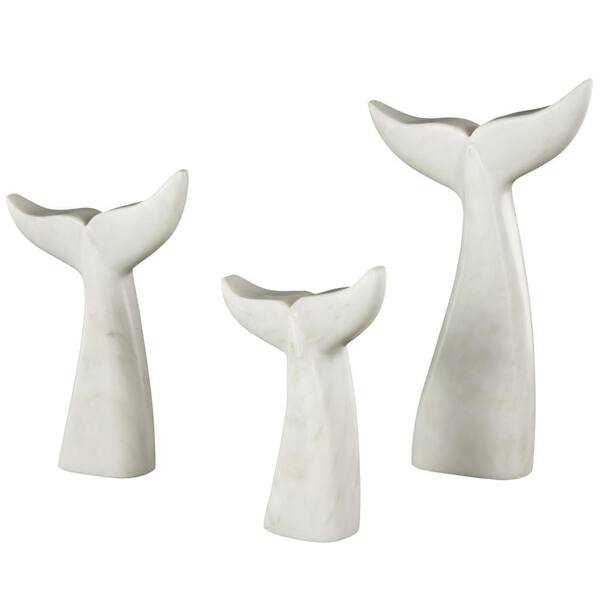 White 5 in. x 9 in. Whale Tail Ceramic Sculpture (Set of 3)