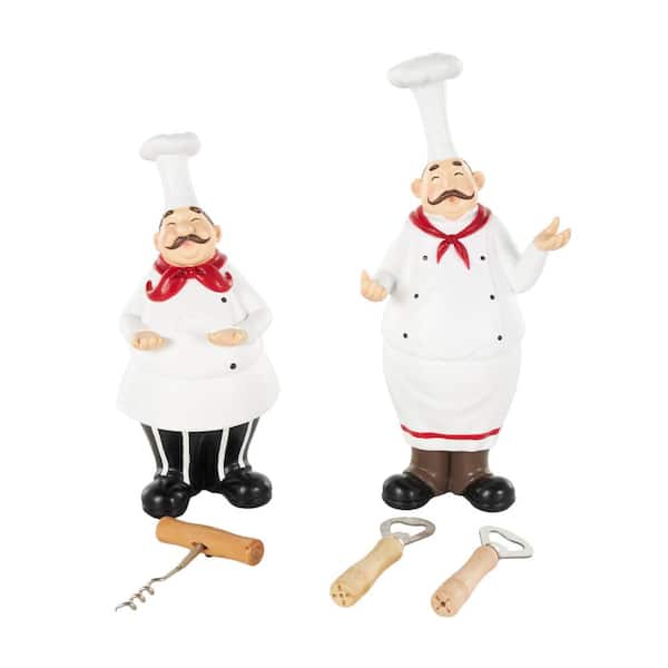White 6 in. x 12 in. Polystone Kitchen Bottle Opener Holder Chef Sculpture ( Set of 2)