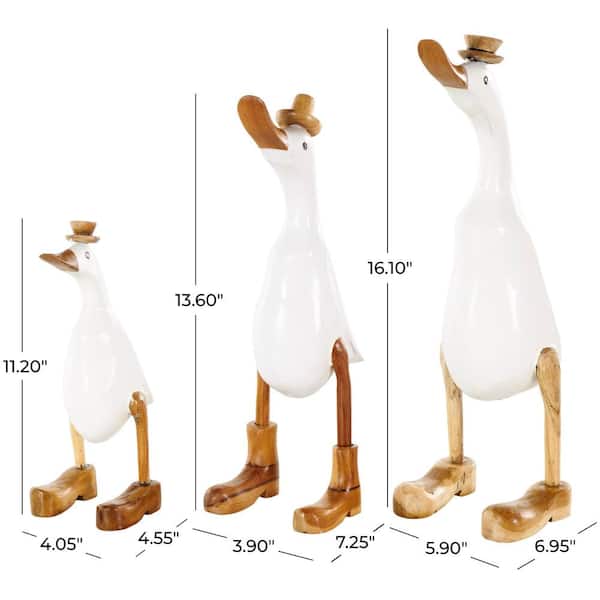White Bamboo Wood Duck Sculpture with Brown Top Hats and Shoes (Set of 3)