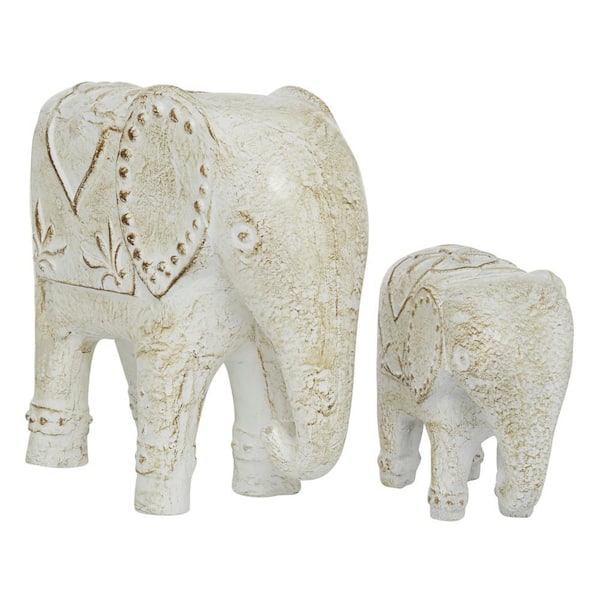 White Ceramic Elephant Sculpture (Set of 2)